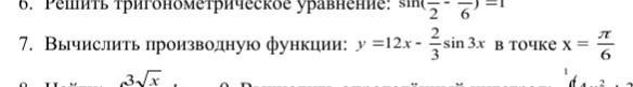 y=12x-\frac{2}{3}sin3x\\y'=12-\frac{2}{3}cos3x*3=12-2cos3x\\y'(\frac{\pi }{6})= 12-2cos\frac{\pi }{2}=12