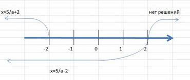 при любом раскладе 5/(а±2) должно быть <0, т.е при а> 2 решений нет