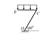 На горизонтальный участок СЕ консоли ОСЕ действует распределенная сила интенсивностью 4 кН/м. Определите реакцию жесткой заделки. Размеры: ОС = 1,8 м, СЕ = 1,2 м. Вес самой консоли не учитывать
