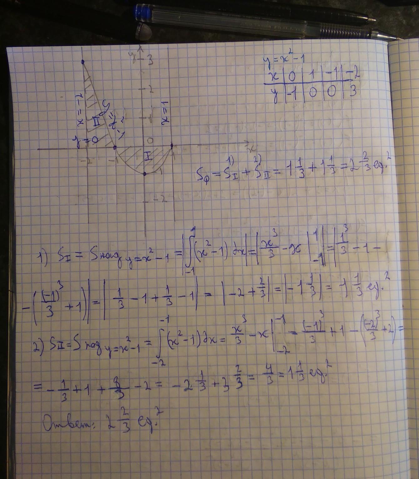Найти площадь фигуры, ограниченной линиями: y=x^2-1 , y=0 , x=-2 , x=1. SROCHNO!!!!!!!!!!!!!!!!!!!!!!!!!!!