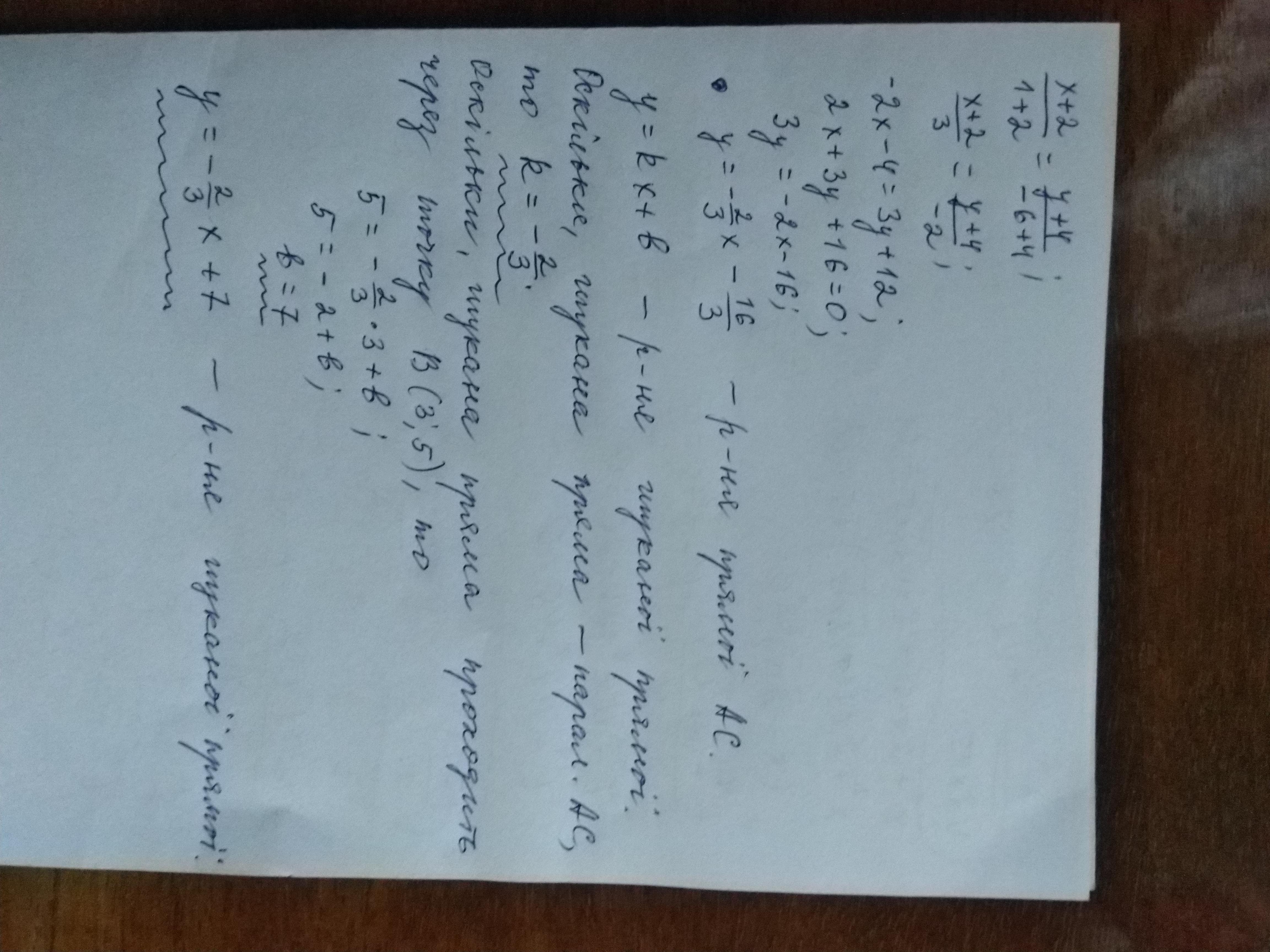 Трикутник заданий вершинами А(–2;–4), В(3;5) і С(1;–6). Скласти рівняння прямої, яка проходить через вершину В паралельно АС.