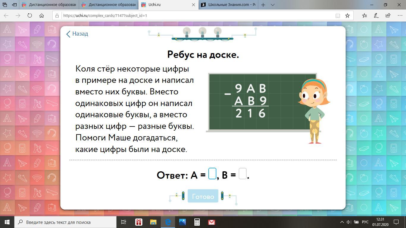 6+9=15 (5 пишем 1 в уме, значит В =5)
