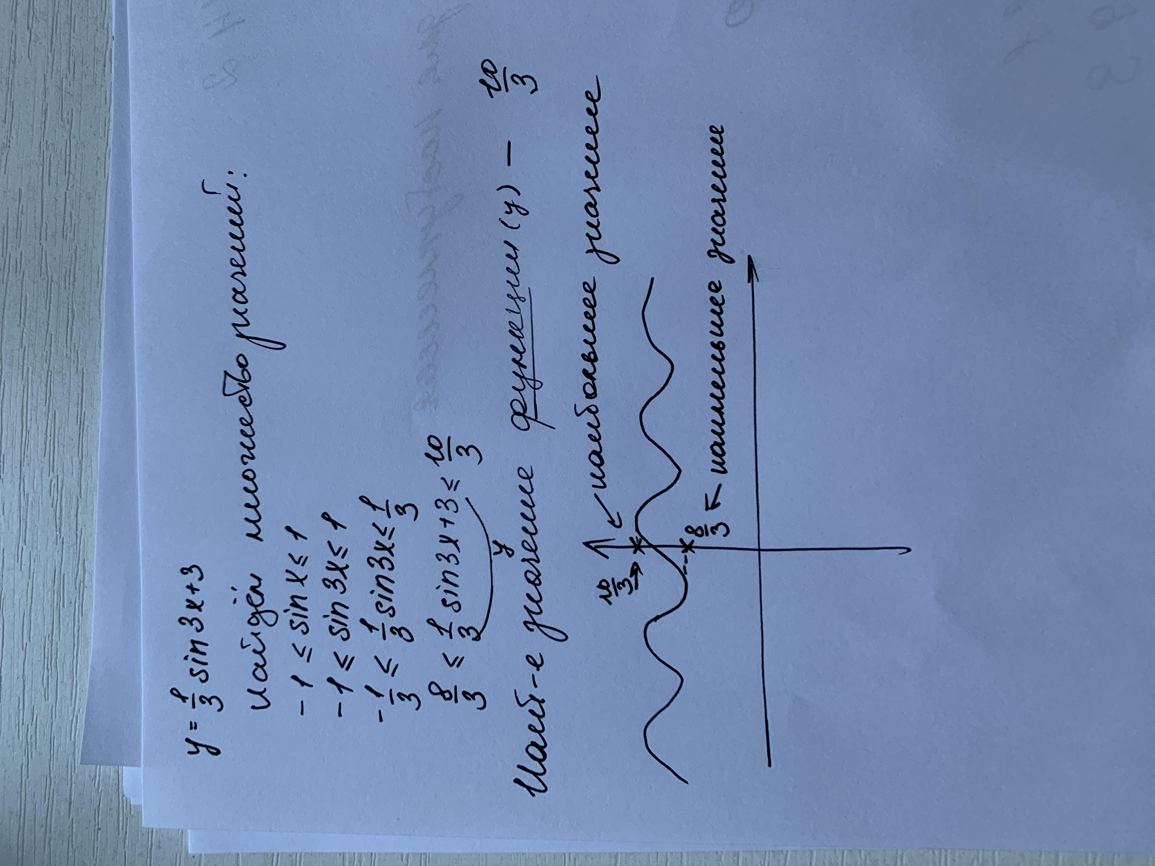 укажите наибольшее значение функции y=1/3*sin*3x+3