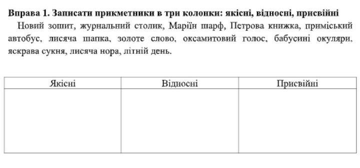 Якісні: новий зошит, оксамитовий голос, яскрава сукня, золоте слово, літній день