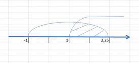 поскольку это парабола ветвями вниз, то строгое неравенство выполняется на промежутке -1 < x < 9/4