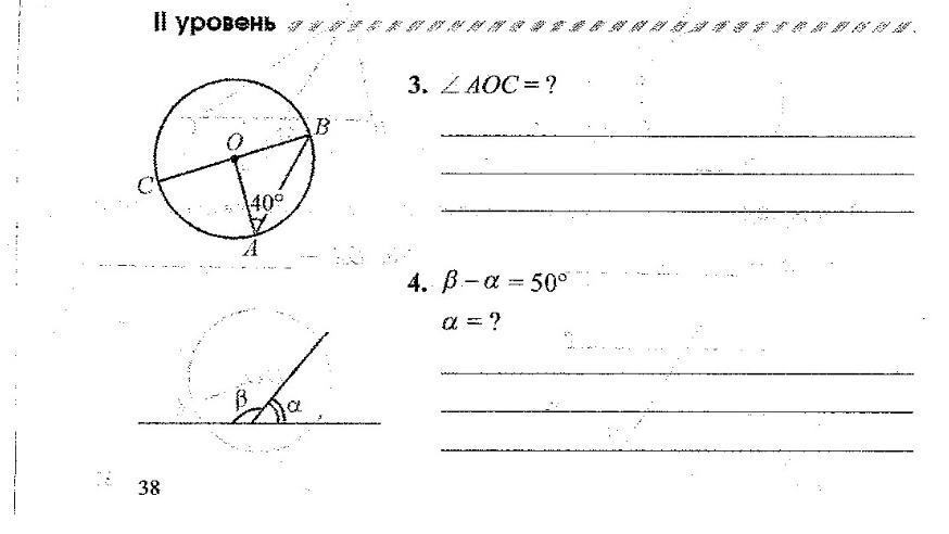 3) AO = OB = R, тр-к AOB - р/б, следовательно <OBA = <OAB = 40, тогда <BOA = 180 - 2 <OAB = 100
