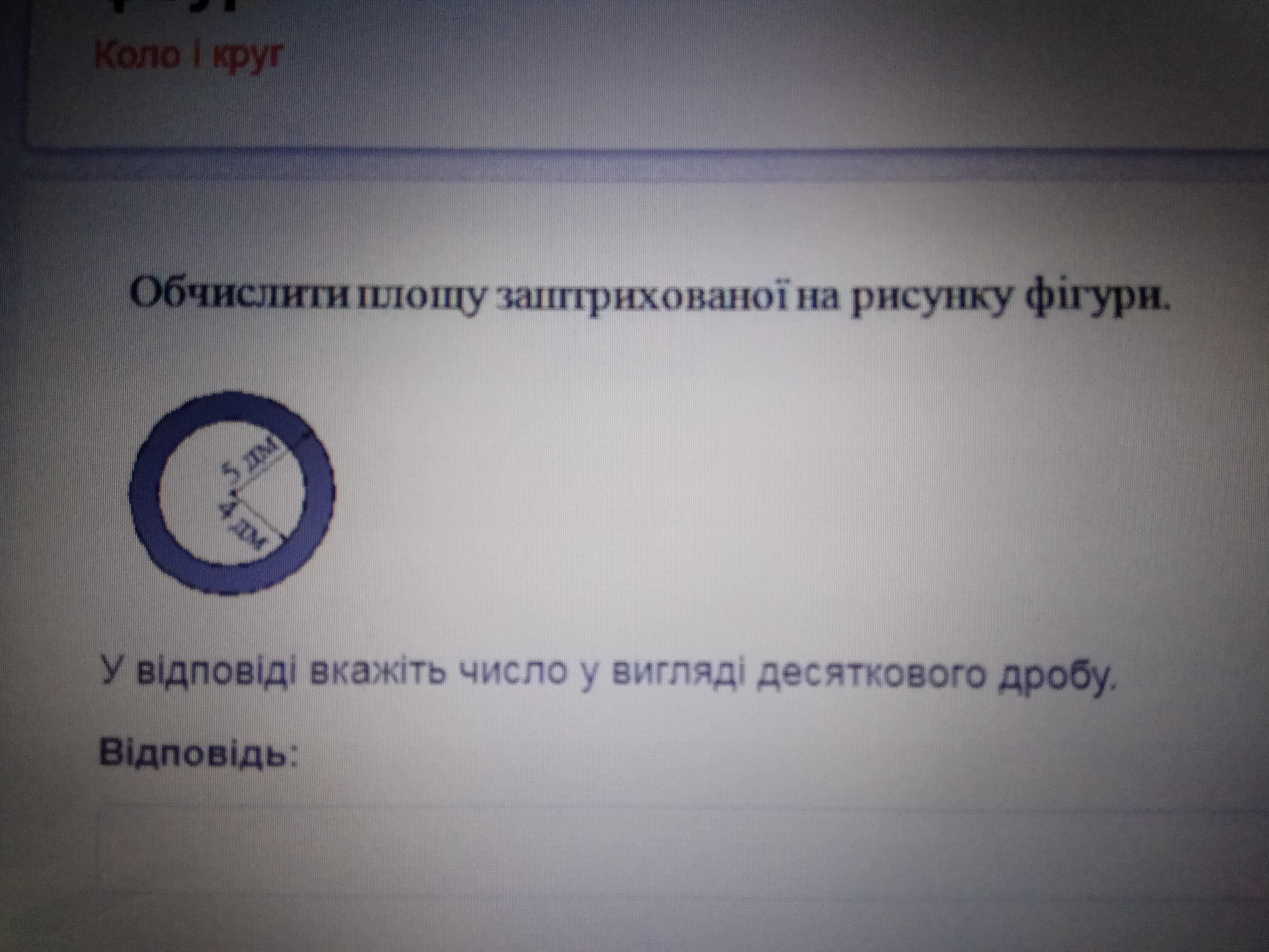площадь круга 2πr² ;R=5дм; r = 4дм