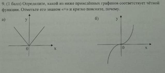 Определите, какой из ниже приведённых графиков соответствует чётной функции. Отметьте его знаком «+» и кратко поясните, почему.