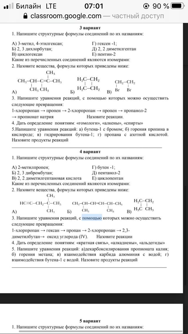2. а) 2,2-диметилпентин-4 б) 2,5-диметилгексен-3 в) бутан