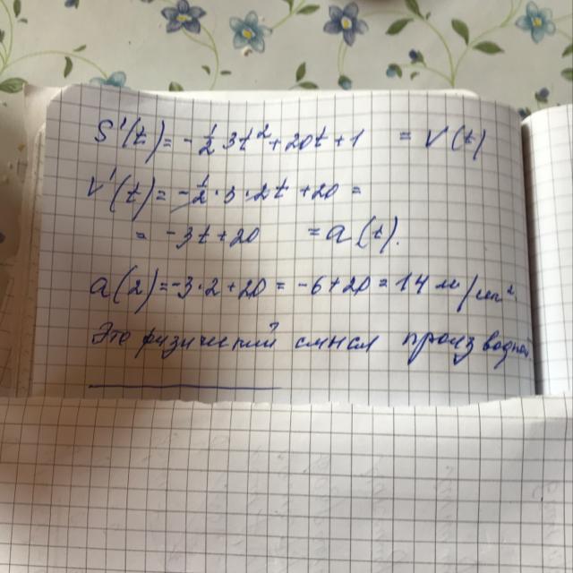 закон прямолинейного движения материальной точки задается формулой s(t)=1\2t^3+10t^2+t, где t-время(в секундах), а s(t)-расстояние (в метрах),пройденное точкой к моменту времени t. тогда ускорение движения точки в момент времени t=2 равно... СРОЧНО!!!!!!!!!