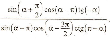 sin(α+π/2)* cos(α-π)* tg(-α) / (sin(α-π) * cos(α- 3π/2) * ctg(α-π)) = cos α * (-cos α) * (-tg α) / ( sin α * (-sin α) * (-ctg α) = cos α * sin α / (sin α * cos α) = 1