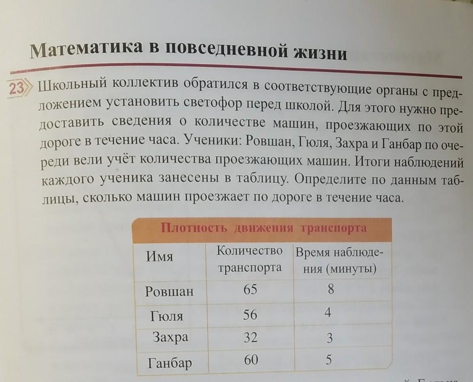 дороге в течение часа. Ученики: Ровшан, Гюля, Захра и Ганбар по оче-