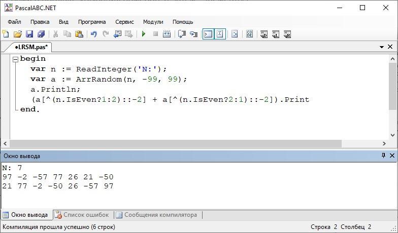 - (a[^(n.IsEven?1:2)::-2] + a[^(n.IsEven?2:1)::-2]).Print