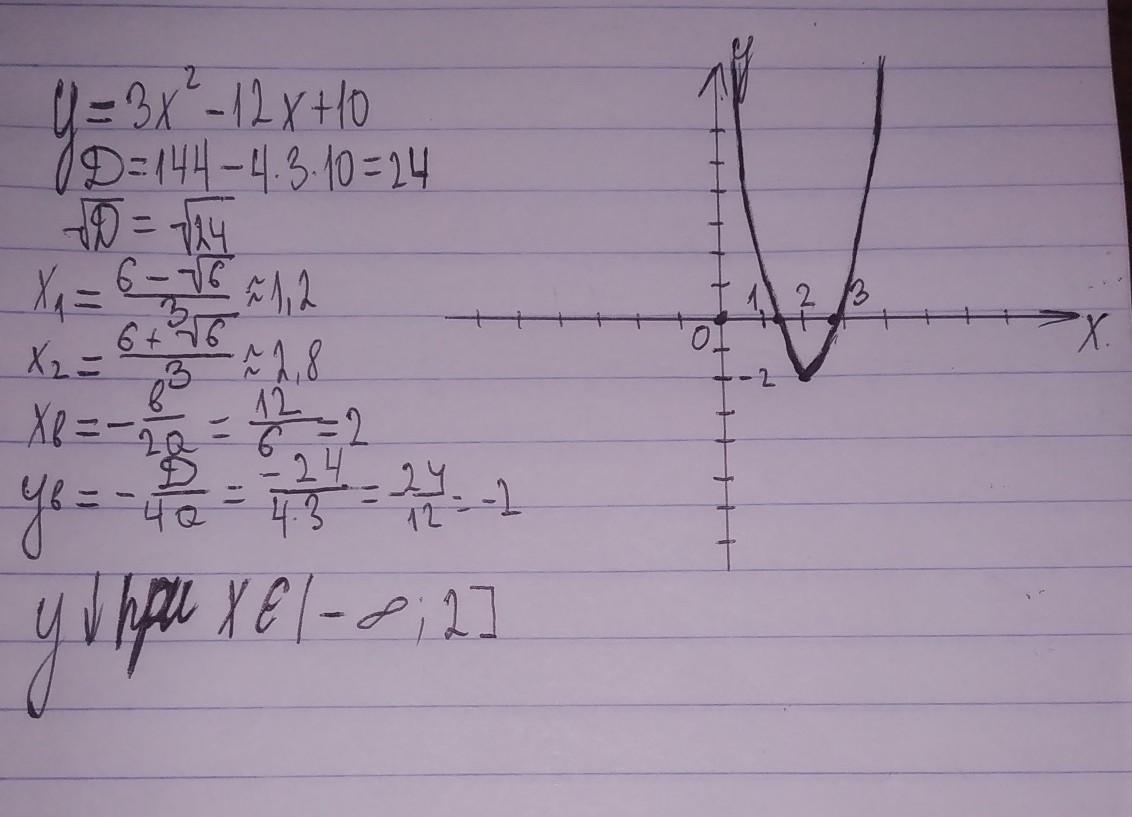 Побудуйте графік функції у=Зx2-12х +10. У бланк відповідей запишіть проміжок спадання функції