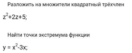 1)Найти точки экстремума функции y = x^2-3x 2)Разложить на множители квадратный трёхчлен z^2+2z+5