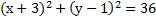 У нас (х-(-3))² + (у-1)²=6²
