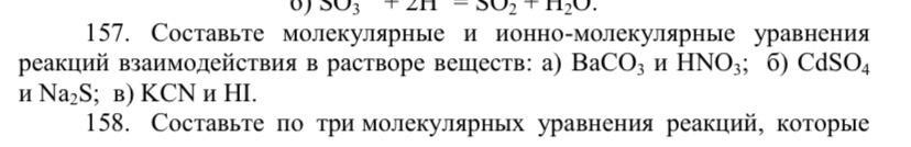 Составьте молекулярные и ионно-молекулярные уравнения реакций взаимодействия в растворе веществ: BaCO3 + HNO3, CdSO4 + Na2S,