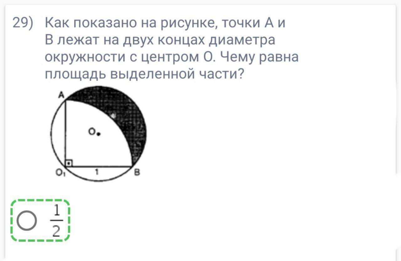 Ssegm= S(r)/2- S(AO1B)= pi/4-1/2