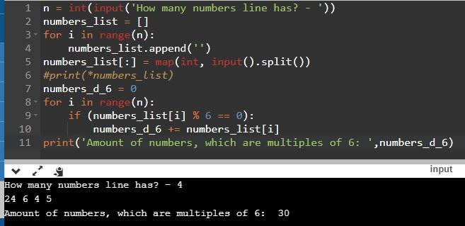 print('Amount of numbers, which are multiples of 6: ',numbers_d_6)