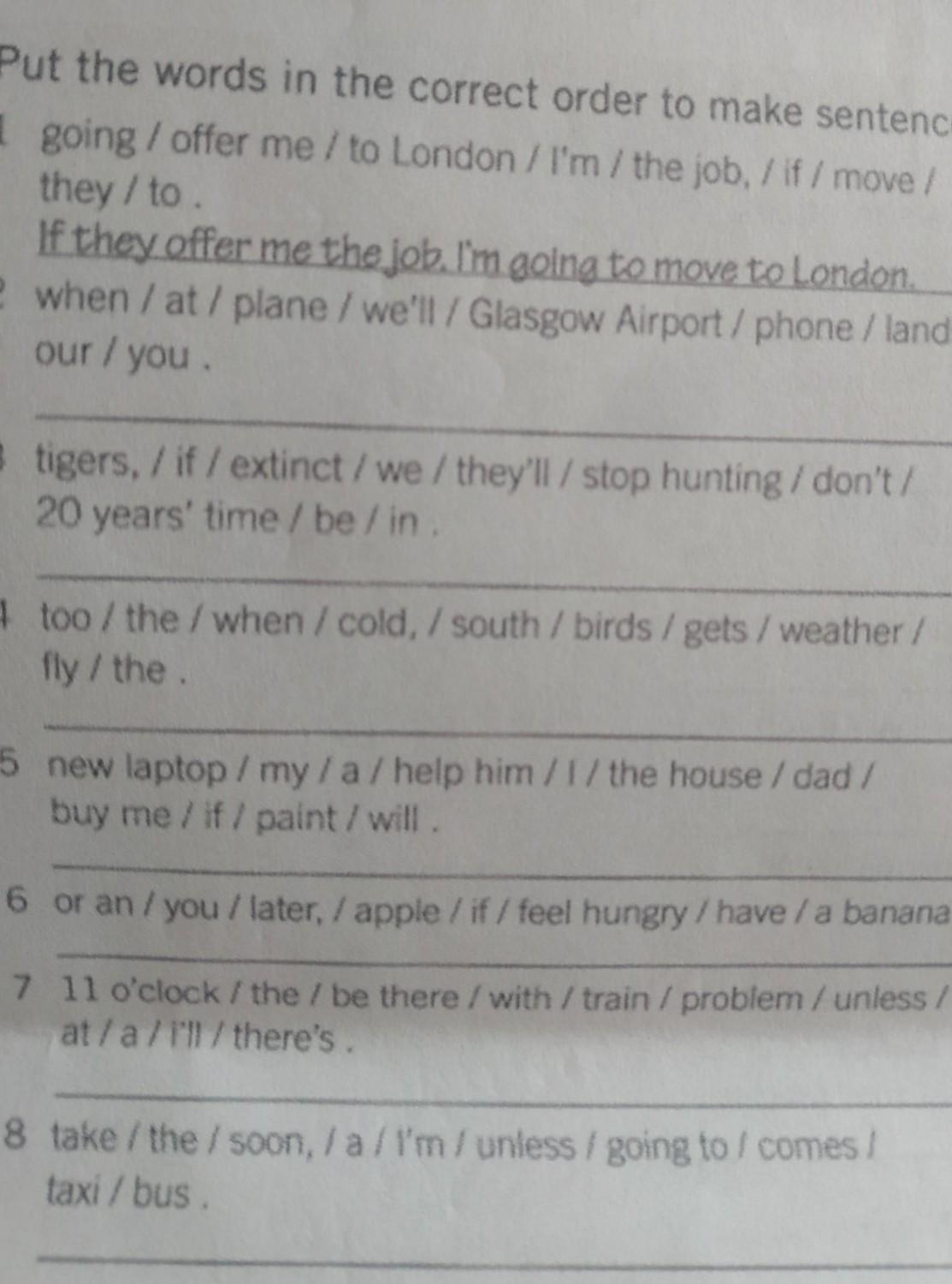 3) If we don't stop hunting tigers, they'll be extinct in 20 years' time.