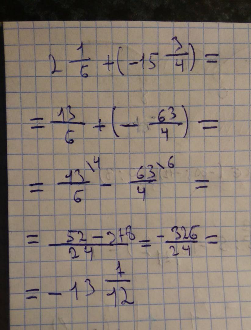 2 1/6-15 3/4=-13 (18-4)/24=-13 14/24=