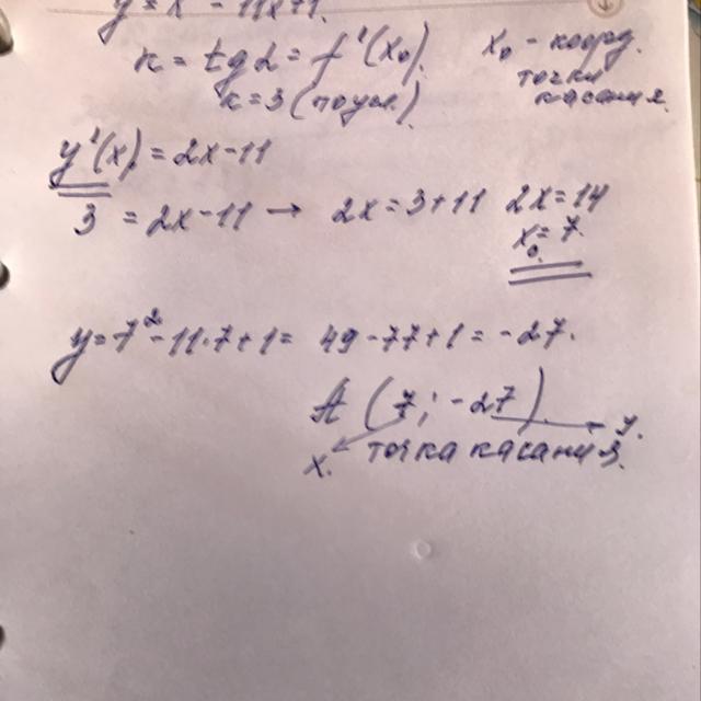 К графику функции y = x^2−11 x+1 проведена касательная c угловым