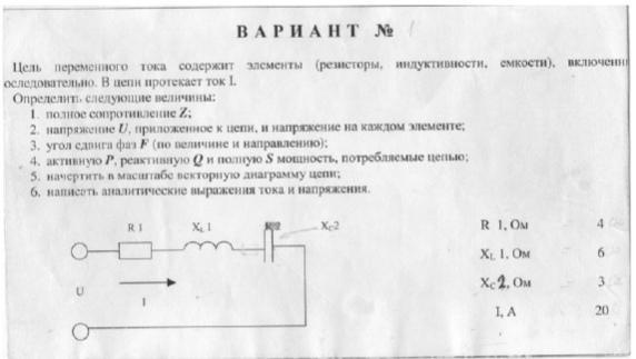 Z=√(4²+(6-3)²)= 5 Ом, U=I*Z=1*5= 5 B,