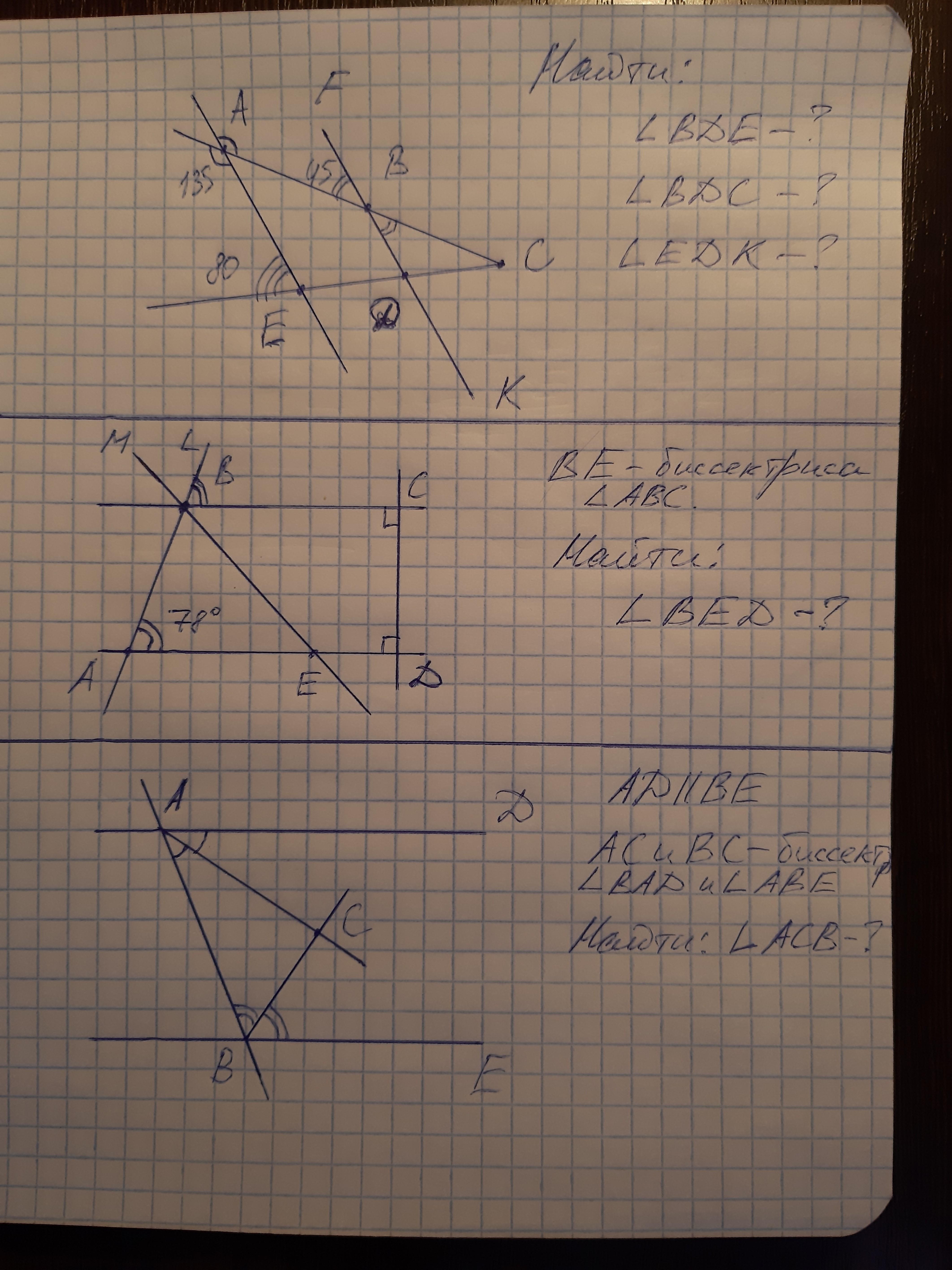 ∠BDE=180°-100°=80° по свойству смежных углов.