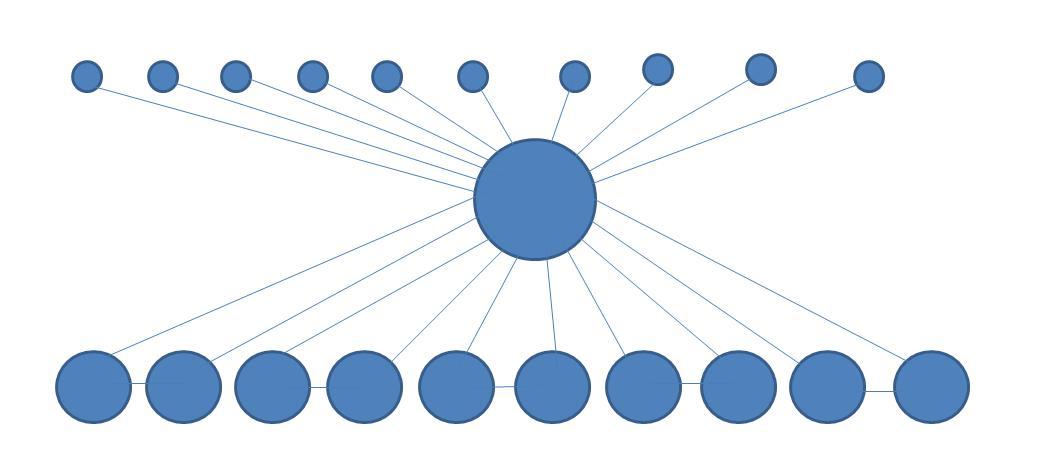 В государстве есть 21 город:10 малых городов,10 средних и столица. Между городами построено 25 дорог. Известно, что из каждого малого города выходит ровно по одной дороге, а из каждого среднего- ровно по две. Сколько дорог может выходить из столицы?