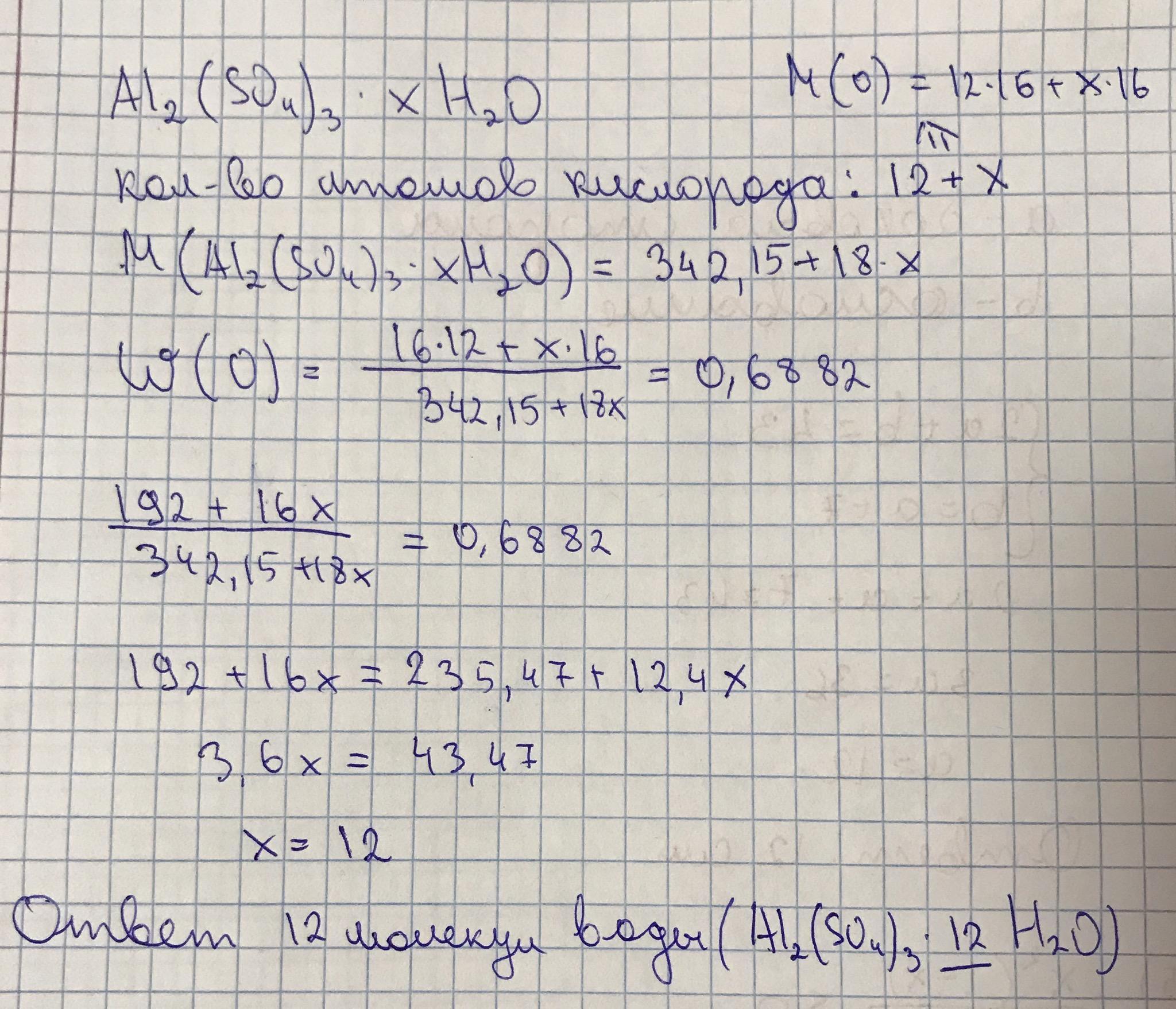 Массовая доля атомов кислорода в кристаллогидрате Al2(SO4)3 × xH2О
