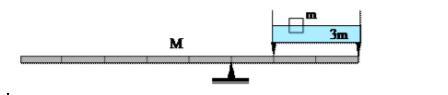 СРОЧНО!ДАЮ 20 БАЛЛЛОВ!!!! На однородном рычаге уравновешена кювета с жидкостью и плавающим в ней бруском (см. рисунок) Масса бруска равна m = 1,0 кг, масса кюветы вместе с жидкостью 3m. Определите массу рычага M, если опора делит рычаг в отношении 3 : 5. Ответ выразите в кг, округлите до десятых.