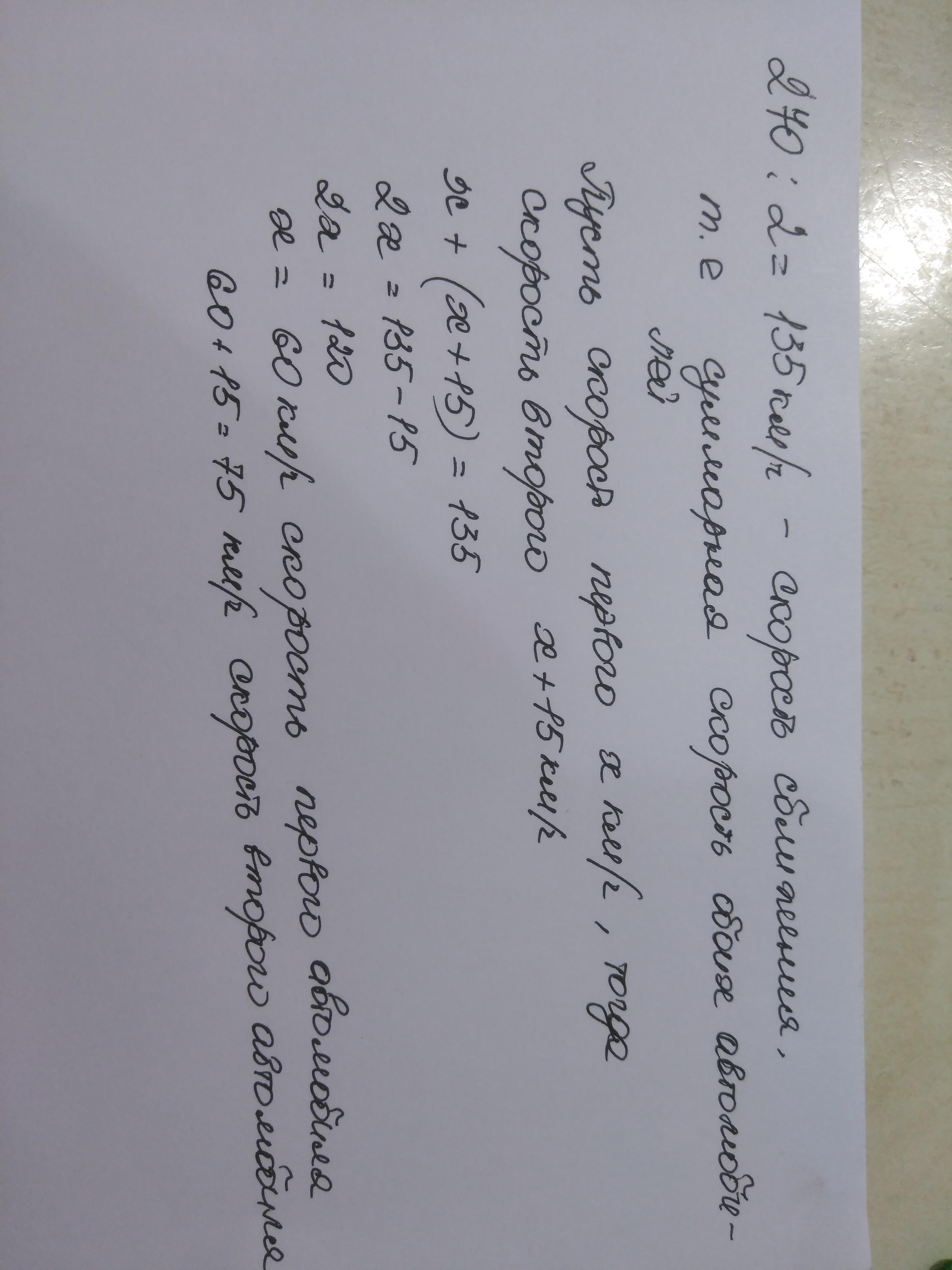 60 + 15 = 75 (км/ч) скорость второго автомобиля