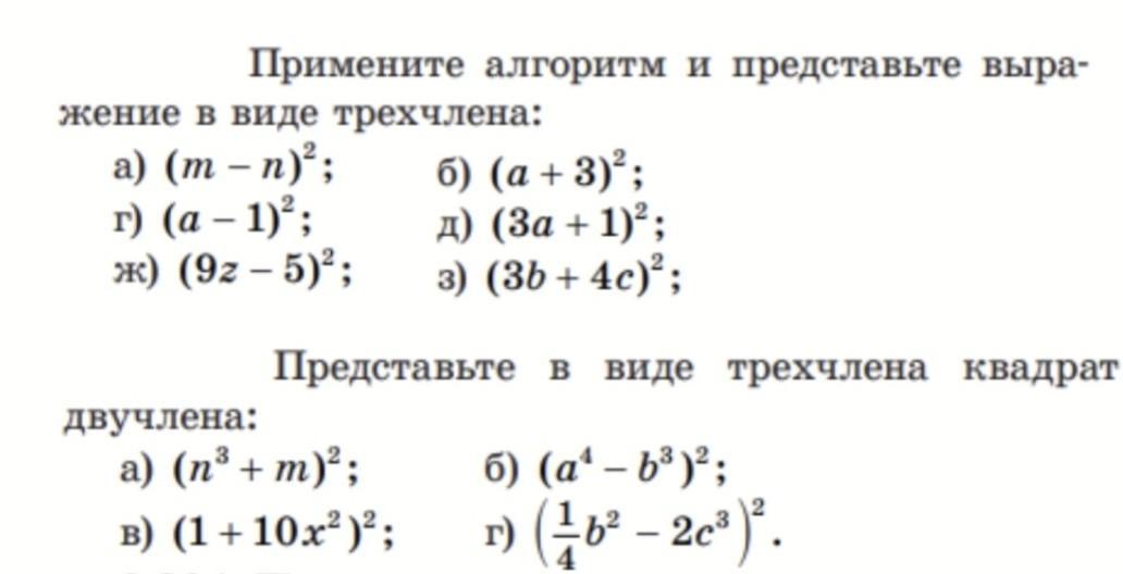 г) (¼b²-2c³)²=1/16b⁴-b²c³+4c⁵