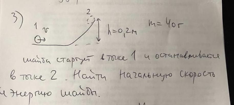 По закону сохранения энергии кинетическая энергия шайбы в точке 1: