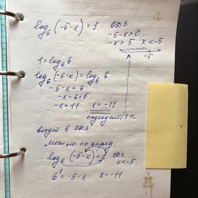 Решите уравнение: log6(-5-x)=1 С ОДЗ пожалуйста