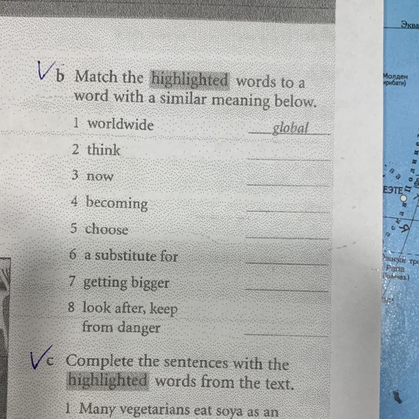 Синонимов может быть много, возможно есть конкретные слова в тексте, которые надо соотнести с заданными.