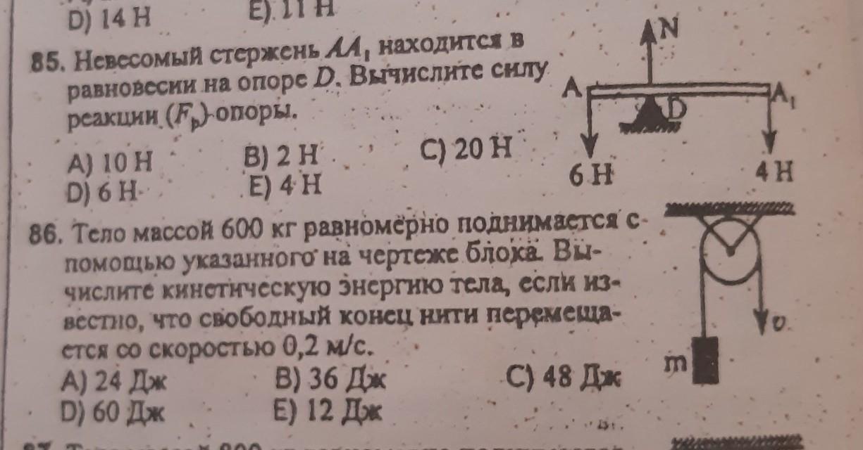 86) Это неподвижный блок, скорость движения свободного конца нити совпадает со скоростью движения самого груза, значит его кинетическая энергия