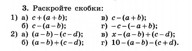 - Минус перед скобкой - поменять знаки в скобках.