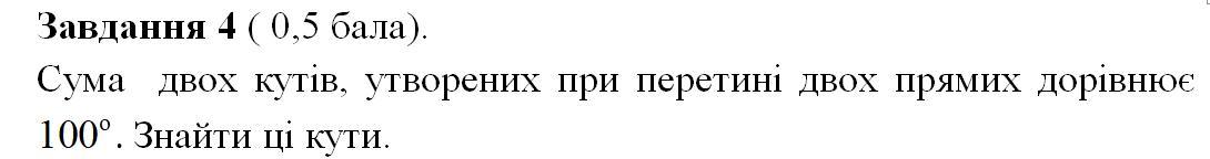 сума двух углов, образованных при пересечении двух прямых равен 100 градусов. найти эти углы
