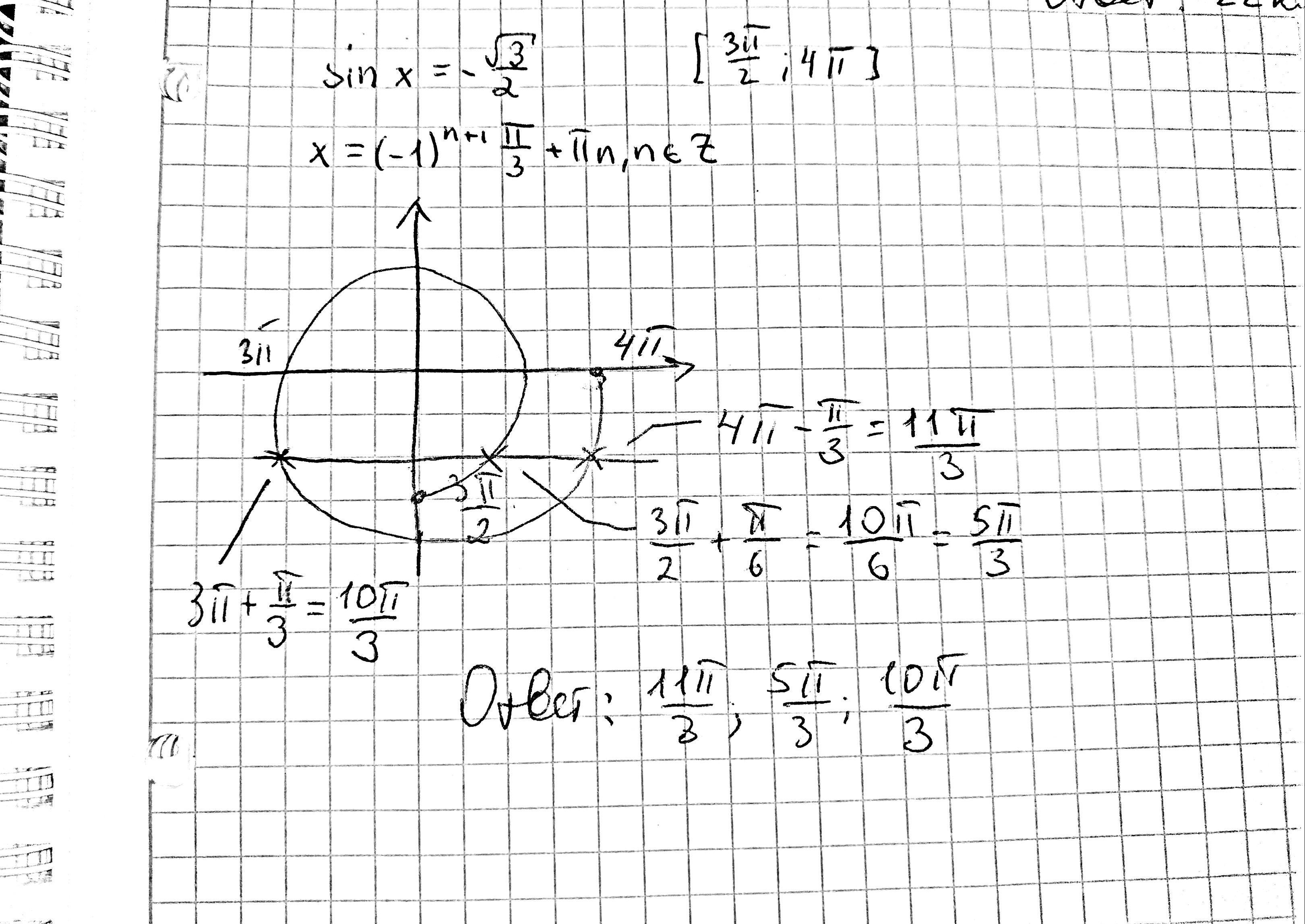 sinx = - √3/2 чему равен x1 и х2 на отрезке {3п/2;4п}?