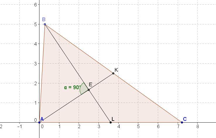 У трикутнику АВС медіани АК BL перетинаються під прямим кутом. Відомо, що АС- 2√13, ВС - √73 Знайдіть сторону АВ.