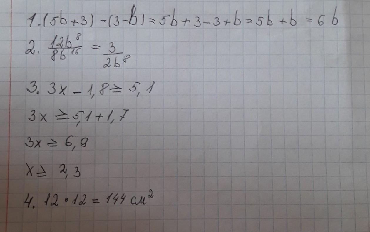 1. (5b+3)-(3-b) = 5b+3-3+b = 5b+b = 6b
