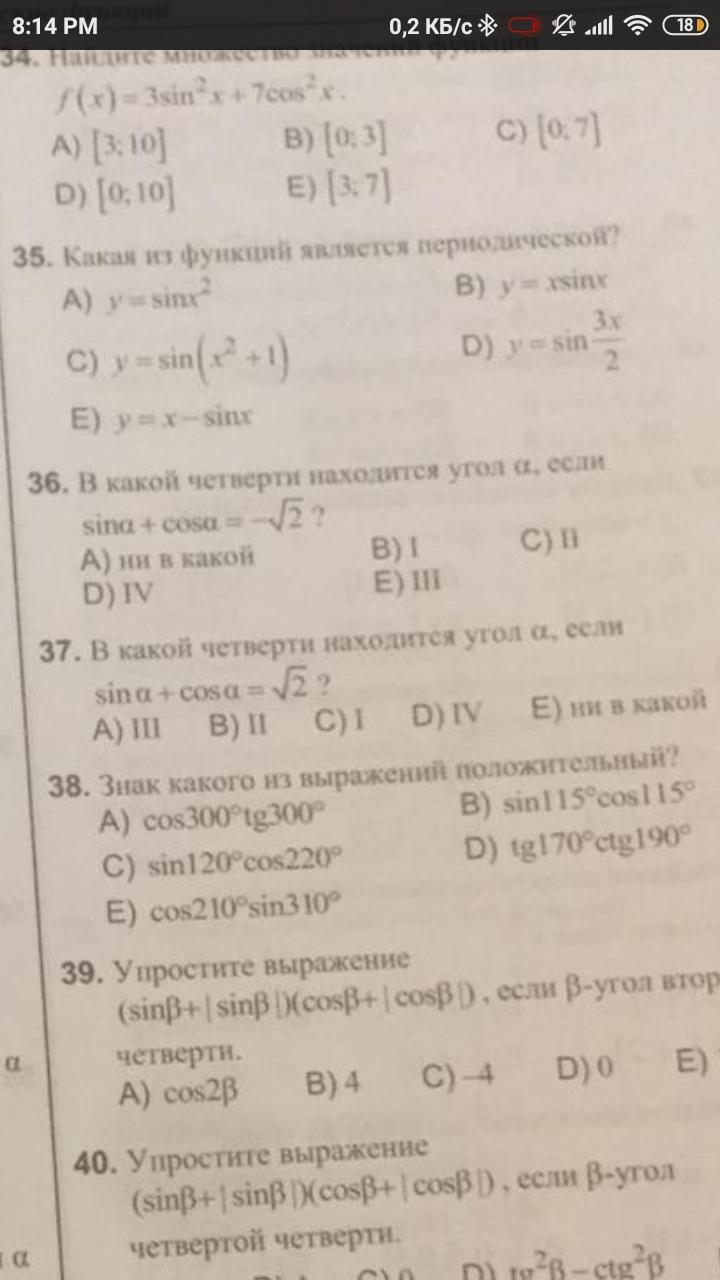 В 37 сумма синуса и косинуса больше 1 а значит синус и косинус одновременно со знаком плюс а это только в первой четверти