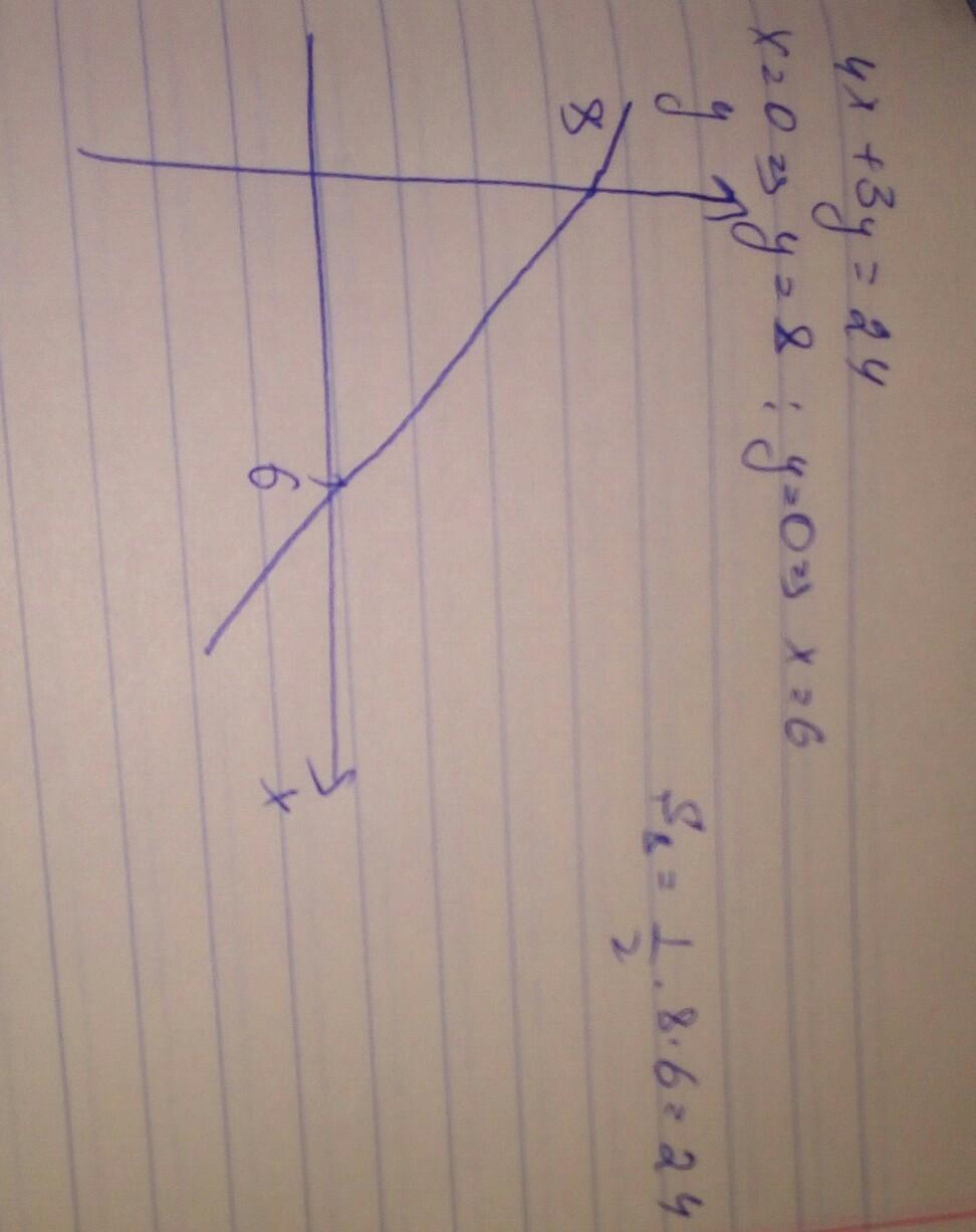 Найти площадь треугольника, образованного отрезком прямой 4 x+3 y = 24 и отрезками, которые отсекает она от координатных осей.