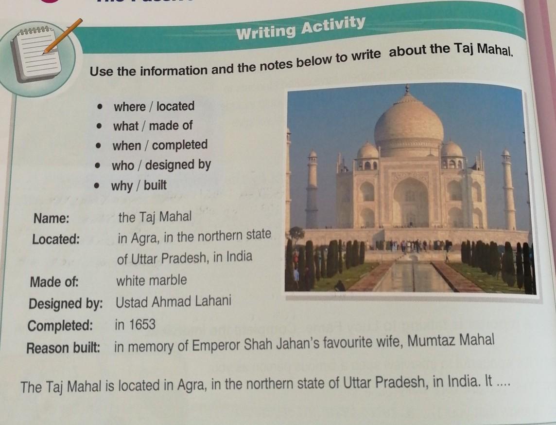 it's made of white marble and designed by Ustad Ahmad Lahani. Taj Mahal was completed in 1653.