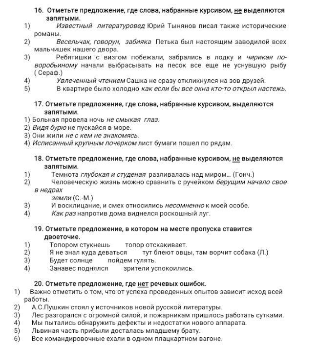 16. Предложение, где выделенные слова НЕ выделяются запятыми: