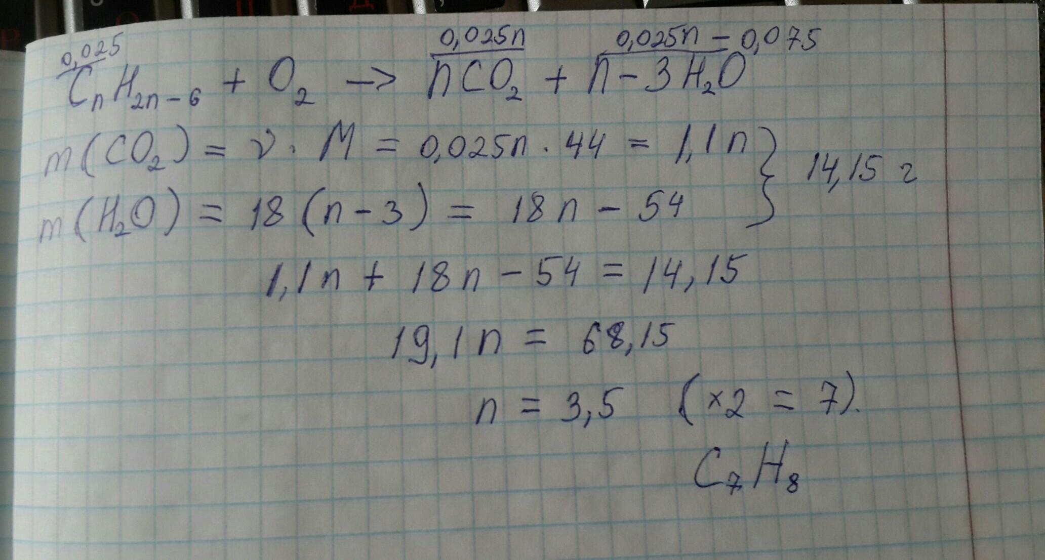 Бензол относится к ароматическим углеводородам (аренам), все гомологи имеют общую формулу CnH2n-6. Не поставил коэффициент только перед кислородом, потому что не надобно в данной задаче