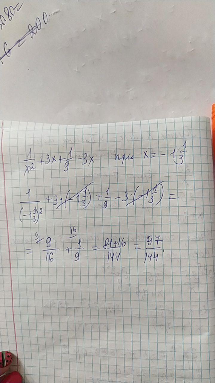 Обчислити вираз 1/х²+3х + 1/9-3х При х=-1 цілих 1/3