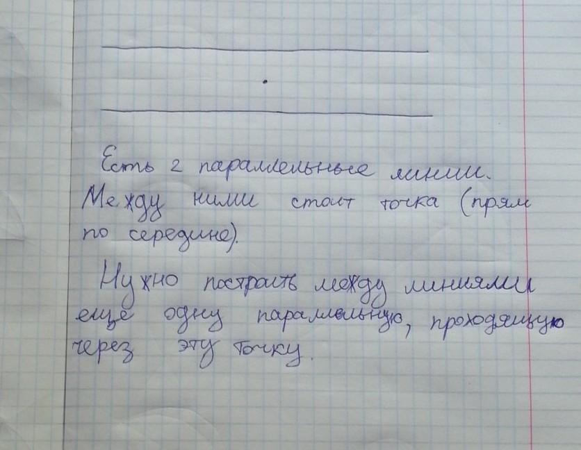 строим точно такую же точку справа или слева от данной точки - чтобы эта наша новая точка находилась на равном расстоянии от прямых (как и данная точка - прямо посередине, только левее или правее данной точки)