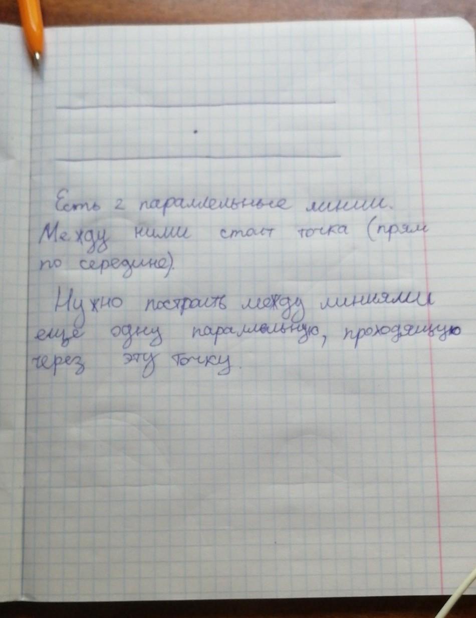 1. Через данную точку проводим наклонную прямую пересекающую две данных;